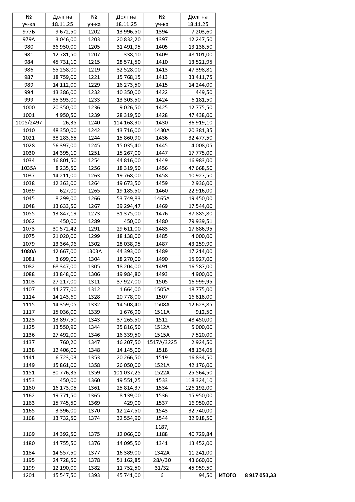 СПИСОК ДОЛЖНИКОВ на 18.11.2025г. (за все года)