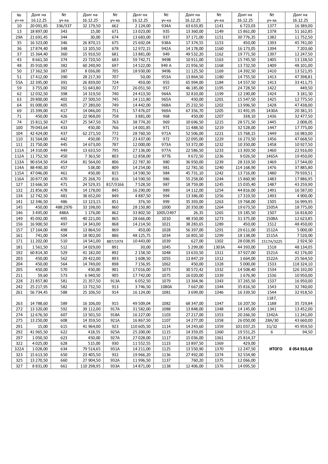 СПИСОК ДОЛЖНИКОВ на 16.12.2025г. (за все года)