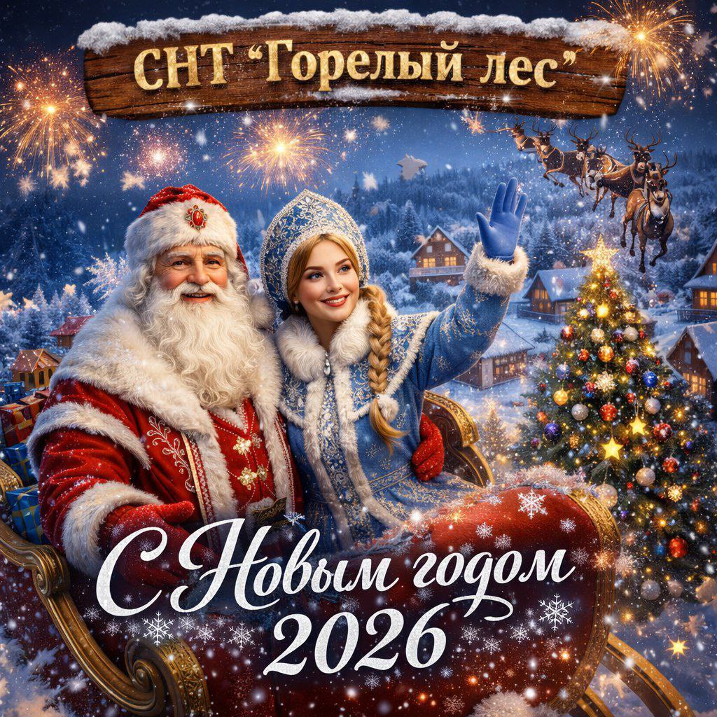 Дорогие соседи, уважаемые жители СНТ «Горелый Лес»! С приближением Нового 2026 года хочу от всей души поздравить каждого из вас с этим волшебным праздником! Уходит в историю ещё один год, принося с собой воспоминания о совместных трудах и радостях. Были, конечно, и заботы, и хлопоты на наших участках и в нашем общем доме – СНТ, но мы вместе справлялись с ними, делая наш «Горелый Лес» ещё лучше и уютнее. Пусть наступающий 2026 год принесёт в каждый дом, на каждый наш участок светлые надежды и добрые перемены! Желаю, чтобы он был наполнен миром, согласием и благополучием. Пусть ваши огороды и сады радуют богатым урожаем, а ваши дома всегда будут полны смеха, тепла и любви ваших близких. Крепкого здоровья вам и вашим родным, душевного спокойствия и много-много счастливых моментов! С наступающим Новым годом, дорогие соседи! Пусть все самые заветные мечты сбудутся! С наилучшими пожеланиями, Председатель СНТ «Горелый Лес» Александр Анатольевич Веттин. |